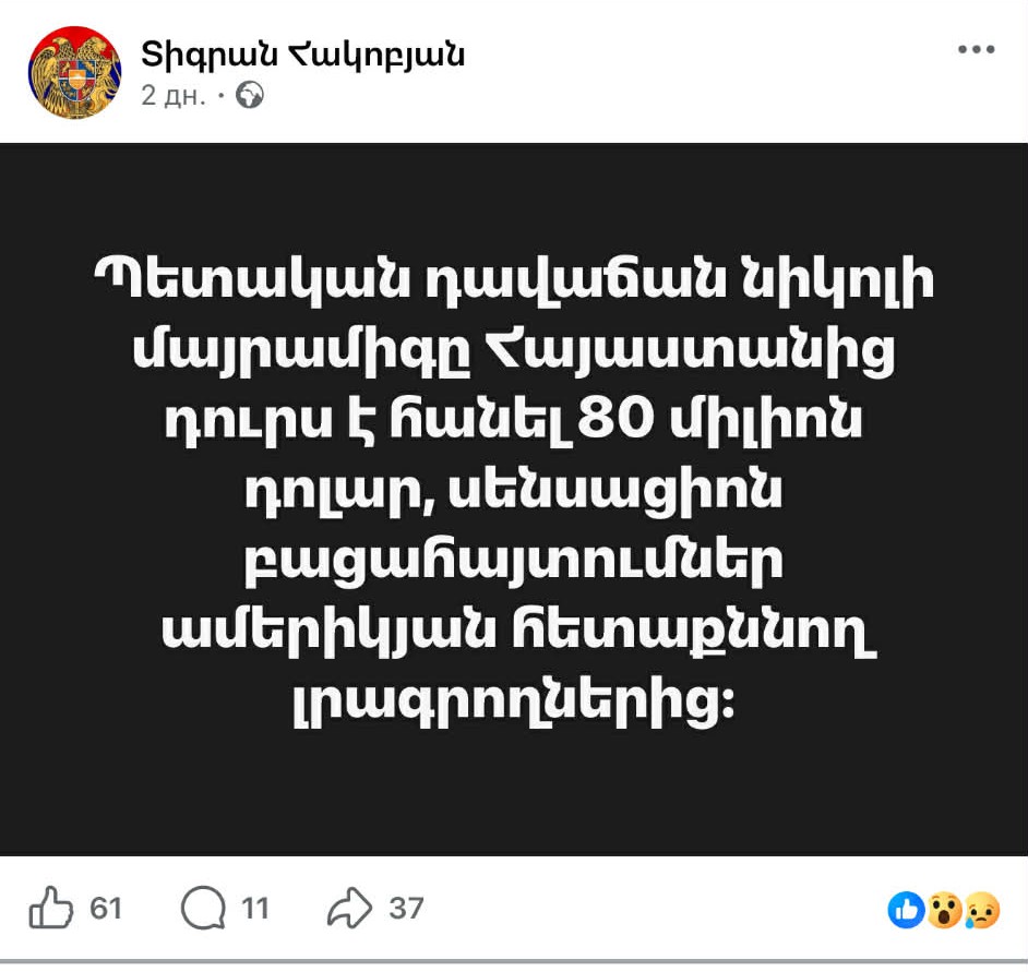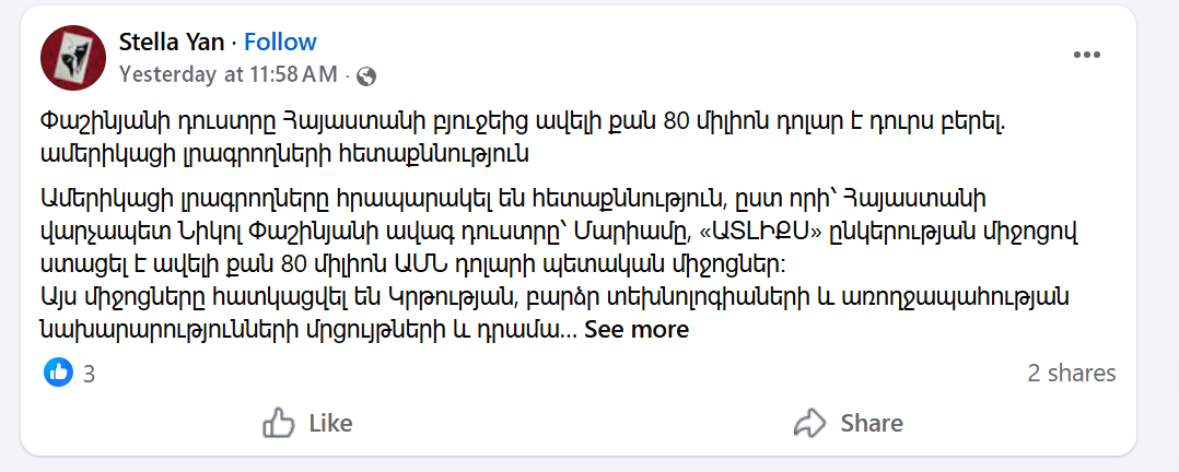 Մարիամ Փաշինյանի կողմից 80 մլն դոլարի յուրացման պատումը․ ով է հեղինակն ու ինչով է հայտնի