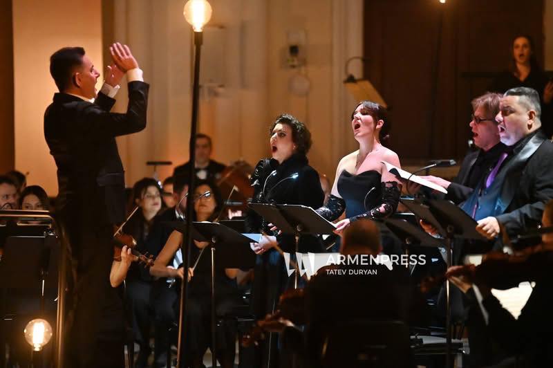«Համերգային ծրագրում հանդես են Հայաստանի ազգային ֆիլհարմոնիկ նվագախումբը և Հովհաննես Չեքիջյանի անվան Հայաստանի ազգային ակադեմիական երգչախումբը. դիրիժոր՝ Էդուարդ Թոփչյան։