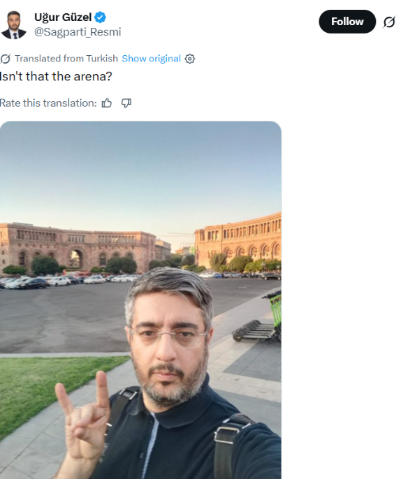 2026 թ. ապրիլի 23-ին X հարթակում Ուղուր Գյուզել անվանումով օգտատերը հրապարակել է լուսանկար, որտեղ նա Հանրապետության հրապարակում ձեռքով ցույց է տալիս «Գորշ գայլերի» նշանը։ Նա լուսանկարին կից գրառում է արել. «Դա հրապարակը չէ՞»։