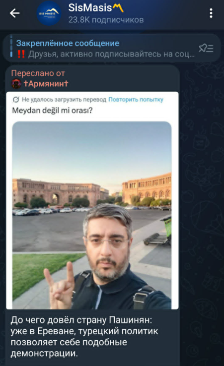 Սկզբնաղբյուրը ռուսական Армянин փակ թելեգրամյան ալիքն է եղել։
