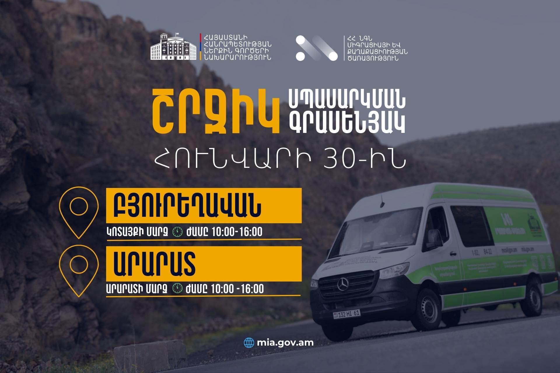 ՆԳՆ շրջիկ սպասարկման գրասենյակները ծառայություններ կմատուցեն Կոտայքի և Արարատի մարզերում
