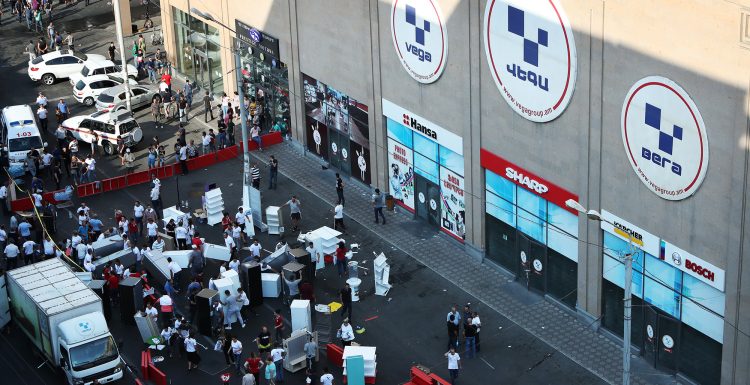 Ինչպես են քաղաքացիները հրդեհվող «Վեգա» խանութից դուրս բերում ապրանքները. ՏԵՍԱՆՅՈՒԹ