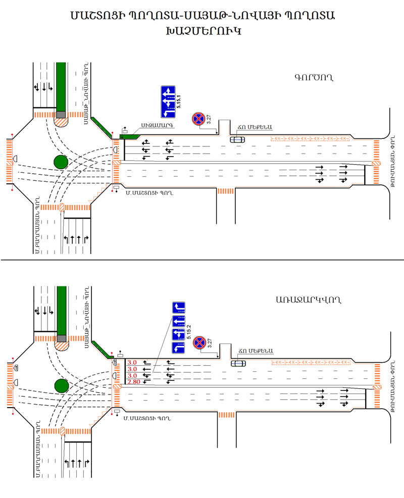 Երթևեկության կազմակերպման փոփոխություն Մաշտոցի և Սայաթ-Նովա պողատաների խաչմերուկում
