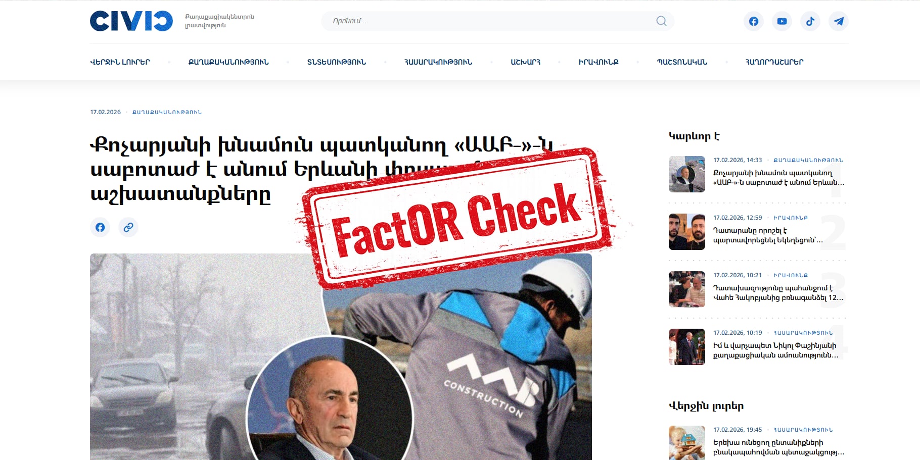 Հիմնանորոգվում են Հ-8, /Մ-2/-Այնթապ-Մխչյան-Արտաշատ-Այգևան-/Մ-2/ հանրապետական նշանակության ավտոճանապարհի կմ21+200-կմ 26+400 և կմ30+000-կմ33+500 հատվածները։ Այս մասին հայտնում են «Ճանապարհային դեպարտամենտ» հիմնադրամից: