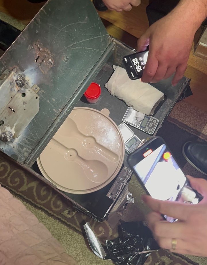 Նախաքննության ընթացքում, օրենքով սահմանված կարգով, կասկածյալի բնակության վայրում կատարվել է խուզարկություն, որի ընթացքում հայտնաբերվել են առանձնապես խոշոր չափերի մոտ 25գ. «Մեթամֆետամին» և մոտ 600գ. «Մաիրուխանա» տեսակի թմրամիջոցներ, էլեկտրական կշեռքներ, ինչպես նաև՝ թմրանյութերի իրացման համար նախատեսված տարբեր տեսակի պարագաներ։