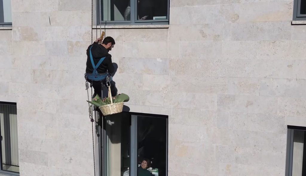 Տեսանյութում երևում է, որ կին աշխատակիցներին ծաղիկներ են նվիրում պատուհանից՝ վերամբարձ կռունկների միջոցով։ Ծովինար Խաչատրյանի խոսքով՝ դա «իրենց ուժերով են կազմակերպել»։ «Իրենք հատուկ կազմակերպությունից են, նախարարության մեր տղաներն են կազմակերպել, իրենց ընկերներն են եղել։ Արհմիության գումարներով միայն ծաղիկներ ենք նվիրել, յուրաքանչյուրին՝ երեք կակաչ»,- մանրամասնեց խոսնակը։