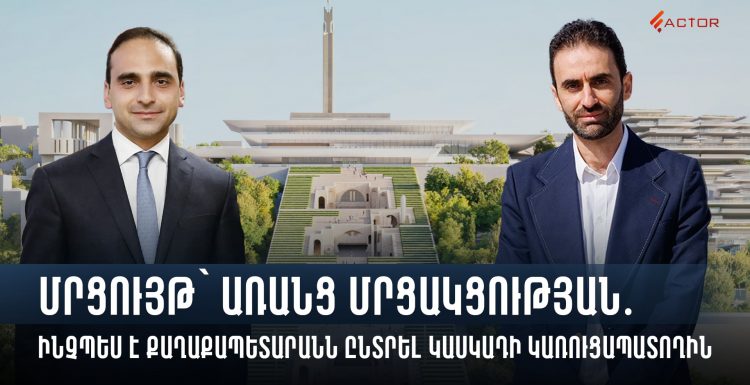 Հնարավո՞ր է, արդյոք, մայրաքաղաքի կենտրոնում՝ ճարտարապետական ժառանգության բացառիկ նմուշի, քաղաքի այցեքարտը համարվող կառույցի շինարարական ծրագիրը վստահել մի ընկերության, որը նախկինում զբաղվել է բեռնափոխադրումներով և չունի կառուցապատման փորձ։ Իսկ հնարավո՞ր է դա անել այնպես, որ այդ ընկերությունը հաղթի մրցույթում, բայց մրցույթ, որպես այդպիսին, չլինի։ Իսկ հիմա՝ փաստերը հերթով։ Ընտրյալները Այս տարվա փետրվարին հայտնի դարձավ, որ Երևանի … Continue reading Մրցույթ՝ առանց մրցակցության․ ինչպես է քաղաքապետարանն ընտրել Կասկադի կառուցապատողին․ ՏԵՍԱՆՅՈՒԹ
