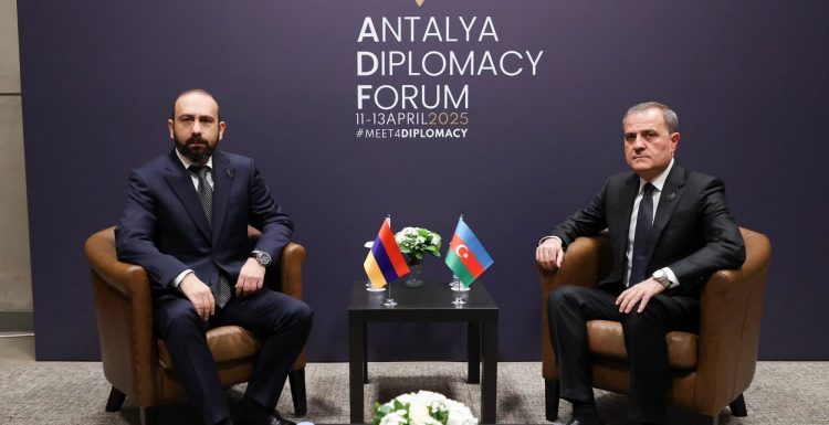 Ադրբեջանի և Հայաստանի արտգործնախարարներ Ջեյհուն Բայրամովը և Արարատ Միրզոյանը հանդիպում են անցկացնում Անթալիայում ընթացող դիվանագիտական ֆորումի շրջանակում։ Այս մասին Factor.am-ին հայտնեց ԱԳՆ մամուլի խոսնակ Անի Բադալյանը: «Կողմերը քննարկել են Հայաստանի և Ադրբեջանի միջև խաղաղության և միջպետական հարաբերությունների հաստատման մասին համաձայնագրի տեքստի ավարտից հետո կարգավորման գործընթացում առկա իրավիճակը: Նախարարները պատրաստակամություն են հայտնել շարունակել երկխոսությունը»,- ասված է … Continue reading Անթալիայում մեկնարկել է Միրզոյան-Բայրամով հանդիպումը
