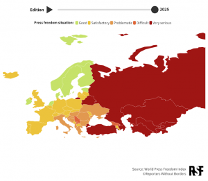 Կառուցվածքային տնտեսական ճգնաժամը սրվել է աշխարհաքաղաքականությամբ – Ուկրաինայում (2025 թվականի մամուլի ազատության ինդեքսում 62-րդ տեղը), որտեղ հուսալի տեղեկատվության հասանելիությունն ավելի կարևոր է դարձել ռուսական ագրեսիայի համատեքստում, խմբագրությունների մոտ 90%-ը գոյատևել է սուբսիդիաների շնորհիվ, հիմնականում՝ ամերիկյան։ Այս ֆինանսավորման դադարեցումը սպառնում է Ռուսաստանի ռազմական հանցագործությունների և կոռուպցիայի լուսաբանմանը՝ այն ժամանակ, երբ Կրեմլը քարոզչության համար նշանակալի ռեսուրսներ ունի։ Սա ազդում է նաև աքսորում գտնվող խմբագրատների վրա։ Զրկված լինելով տեղական եկամտի աղբյուրներից և ամերիկյան աջակցությունից՝ նրանք զանգվածաբար ազատում են իրենց աշխատակիցներին, ինչն ավելի է խաթարում անկախ տեղեկատվության հասանելիությունը, հատկապես, այնպիսի երկրների համար, ինչպիսիք են Ռուսաստանը (171-րդ տեղը) և Բելառուսը (166-րդ տեղը)։ Վրաստանում (114-րդ տեղ) գովազդի շուկան վերահսկվում է իշխող կուսակցության հիմնադիր, օլիգարխ Բիձինա Իվանիշվիլիի կողմից, մինչ «արտաքին ազդեցության» մասին օրենքն արգելափակում է ֆինանսավորման այլընտրանքային աղբյուրները։ Ադրբեջանում (167-րդ տեղ) ֆինանսավորման պակասը հանգեցրել է անկախ լրատվամիջոցների կա՛մ փակմանը, կա՛մ արտաքսմանը։