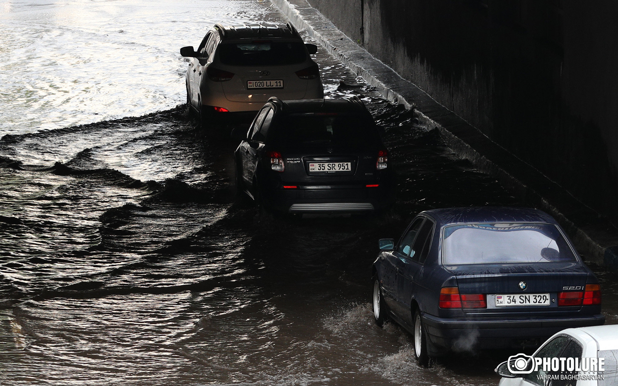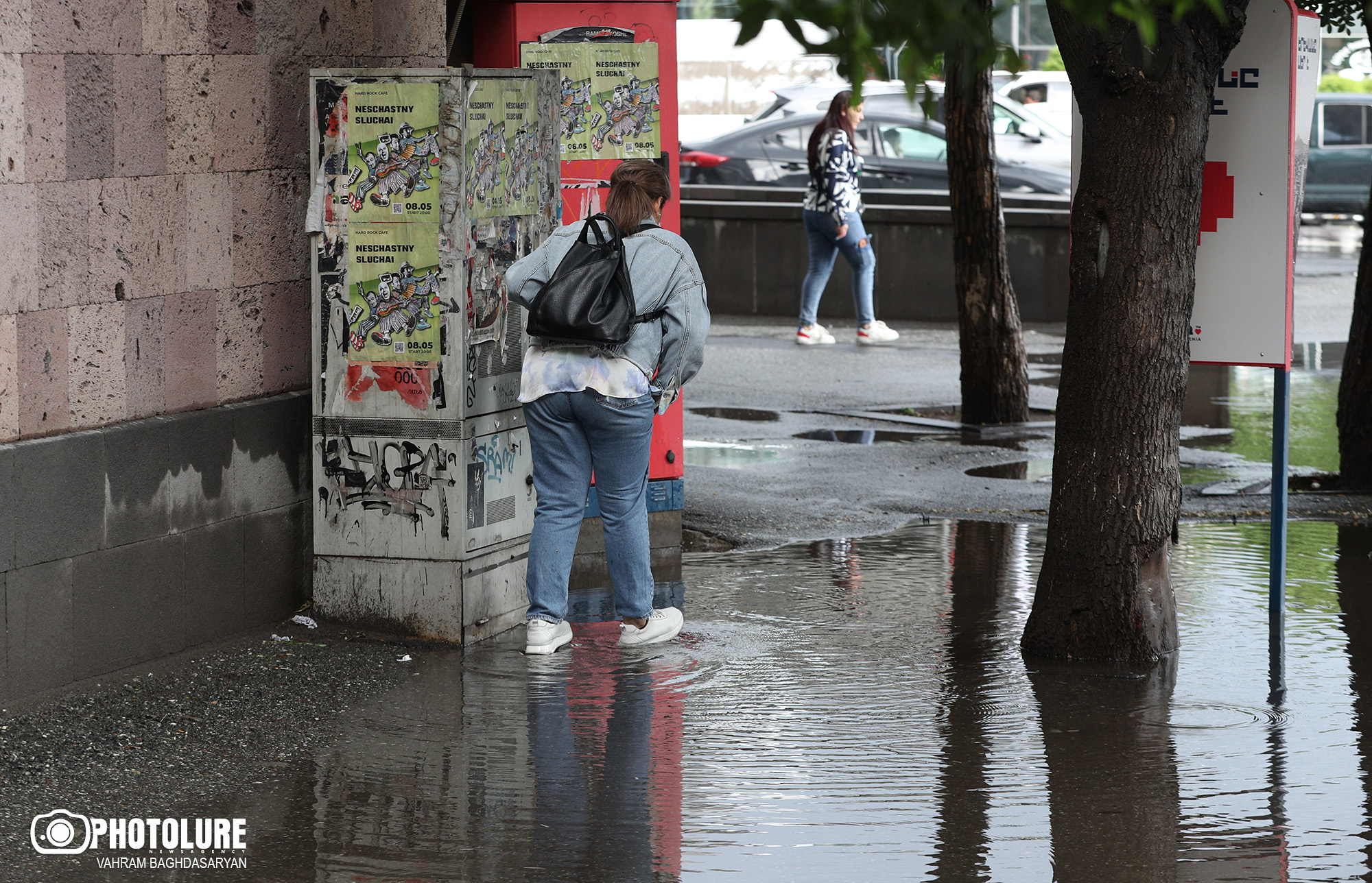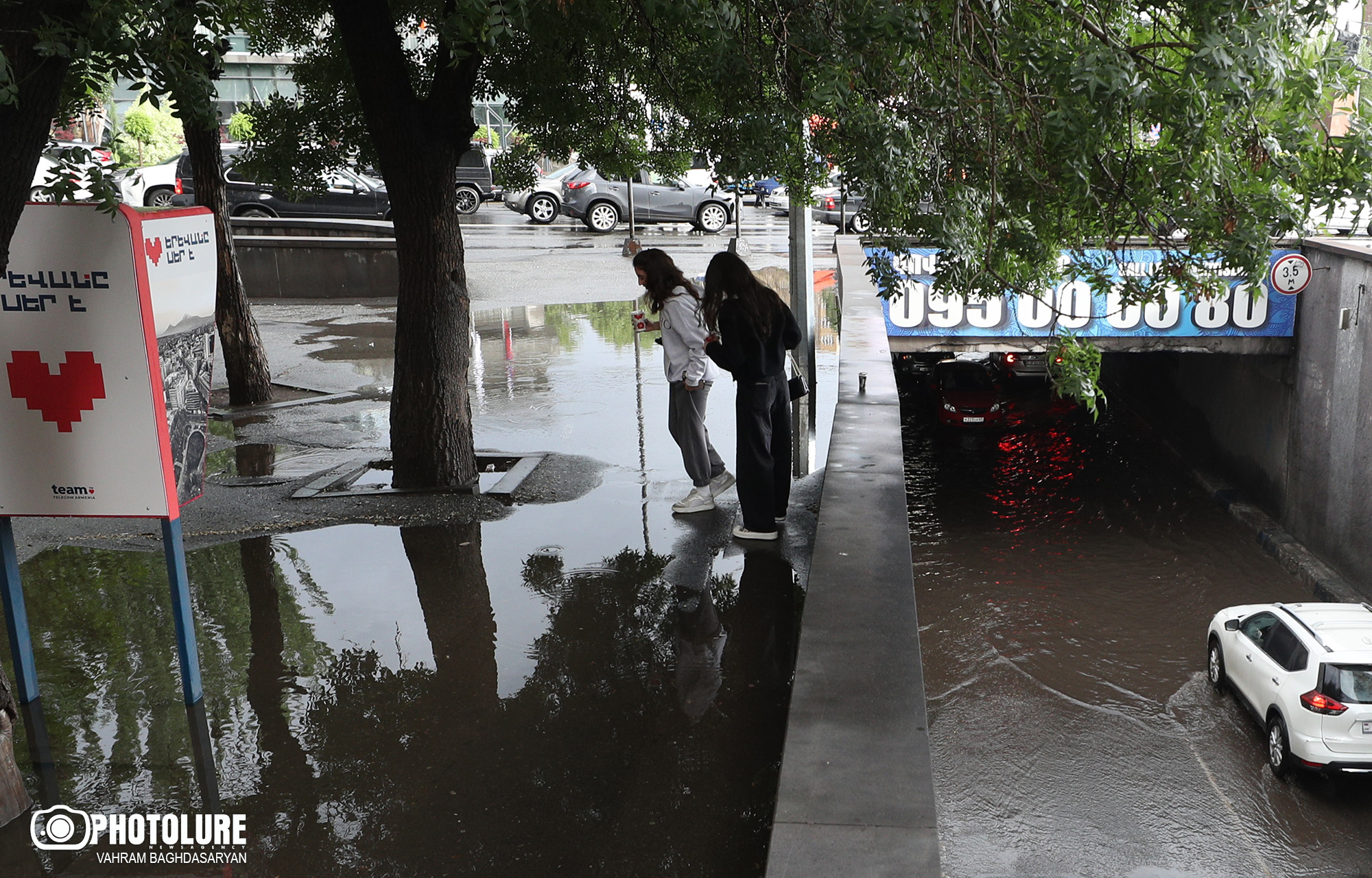 Երևանում հորդառատ անձրև է տեղացել, փողոցները հեղեղվել են։