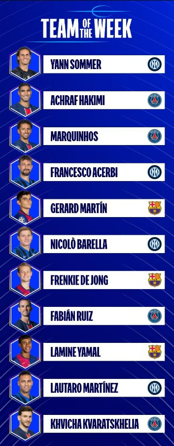 Հարձակվողներ՝ Խվիչա Կվարացխելիա (ՊՍԺ), Լաուտարո Մարտինես («Ինտեր»), Լամին Յամալ («Բարսելոնա»)։