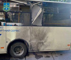 Հաղորդվում է, որ Խերսոնում հարձակման է ենթարկվել ուղևորատար ավտսբուս։ «Суспiльне»-ն նշում է, որ ուղևորներից մեկը՝ ծնված 1960 թվականին, ստացել է ականի պայթյունի վնասվածք և ուղեղի ցնցում։ Բժիշկները նրան օգնություն են ցուցաբերում։ 56-ամյա մի տղամարդ նույնպես վնասվածքներ և ուղեղի ցնցում է ստացել։