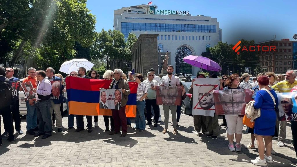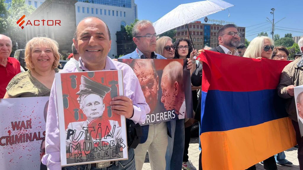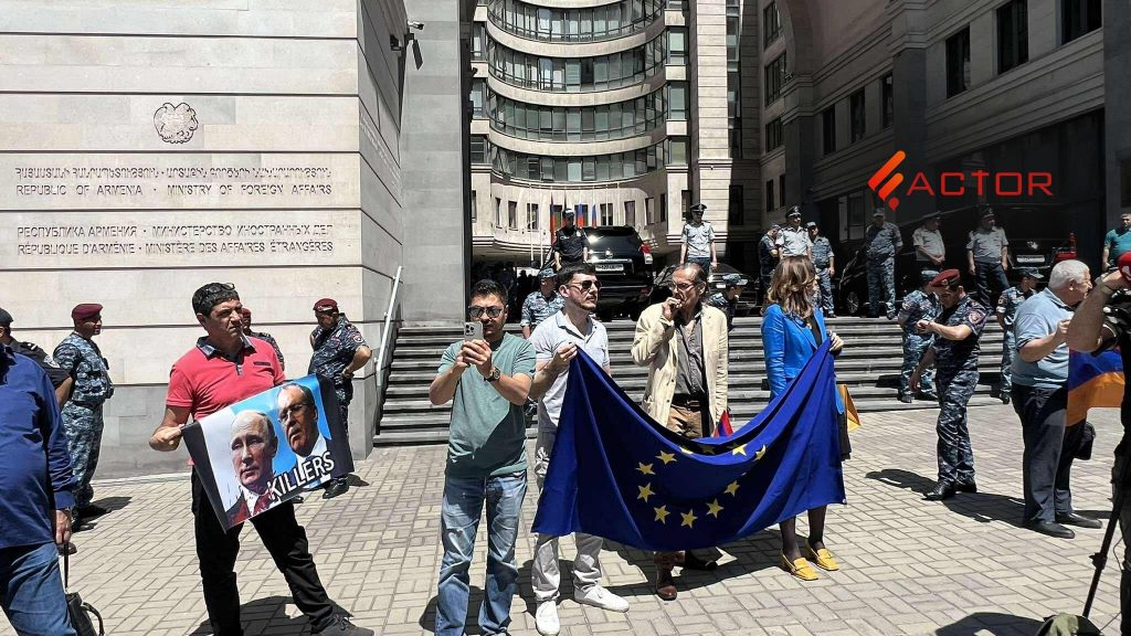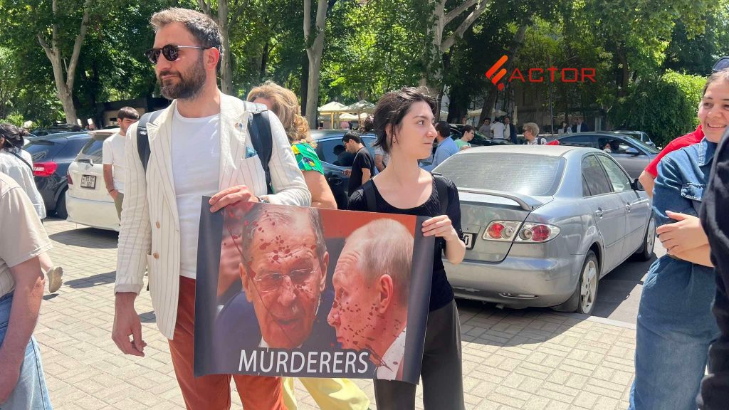 Россия-предатель, Путин-убийца. պաստառներ և վանկարկումներ՝ ԱԳՆ շենքի դիմաց․ ԼՈՒՍԱՆԿԱՐՆԵՐ