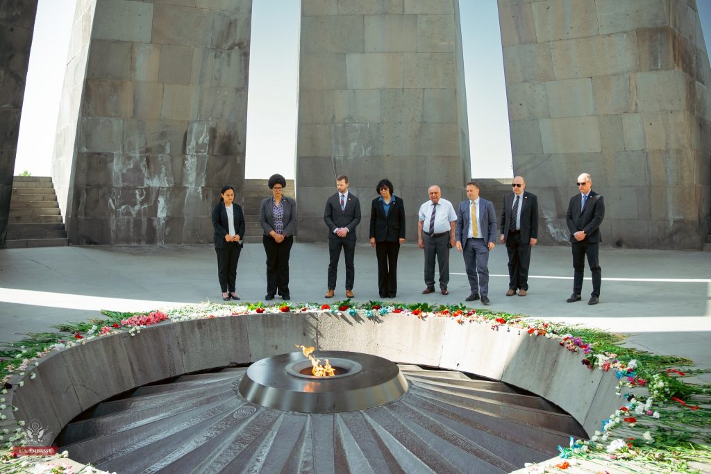 «ԱՄՆ էներգետիկայի դեպարտամենտի Միջազգային միջուկային քաղաքականության և համագործակցության հարցերով փոխքարտուղարի տեղակալ Ալեշիա Դունկանի գլխավորած պատվիրակությունն այցելել է Ծիծեռնակաբերդի հուշահամալիր՝ հիշատակի տուրք մատուցելու և անմար կրակի մոտ ծաղիկներ դնելու»,- ասված է ՀՀ-ում ԱՄն դեսպանության տարածած հաղորդագրությունում։