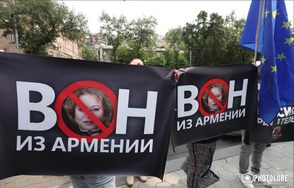 ՀՀ Ազգային ժողովի շենքի դիմաց՝ Վալենտինա Մատվիենկոյի այցի դեմ բողոքի ակցիա է անցկացվում։