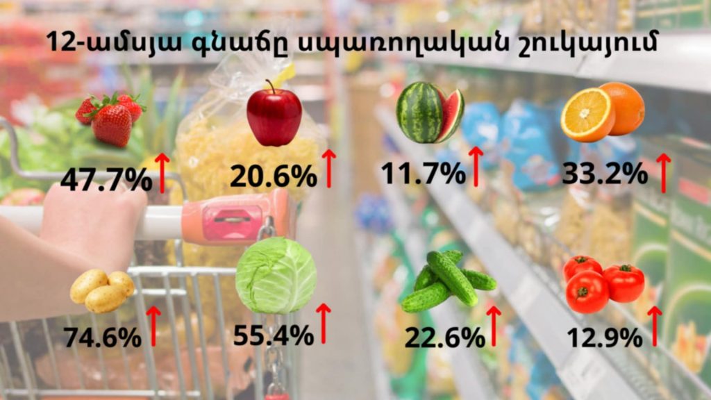 Նախորդ տարվա մայիսի համեմատ՝ այս տարվա մայիսին ելակը, խնձորը, ձմերուկն ու նարինջը թանկացել են, համապատասխանաբար, 47,7%, 20,6%, 11,7% և 33,2%-ով։