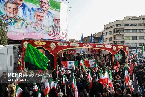 Թեհրանի Ազադի կենտրոնական պողոտայով տեղափոխվել են ԻՀՊԿ գլխավոր հրամանատար գեներալ Հոսեյն Սալամիի, գեներալ Ամիր Ալի Հաջիզադեի և այլոց դագաղները։ Դագաղները ծածկված էին Իրանի դրոշով, իսկ դրանց վրա տեղադրված էին զոհվածների նկարները։