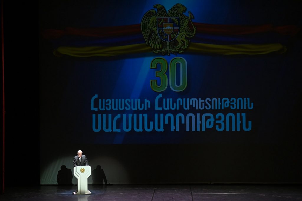 Հանրապետության նախագահ Վահագն Խաչատուրյանը մասնակցել է ՀՀ Սահմանադրության 30-ամյակին և պետական խորհրդանիշերի օրվան առթիվ կազմակերպված հանդիսավոր միջոցառմանը: