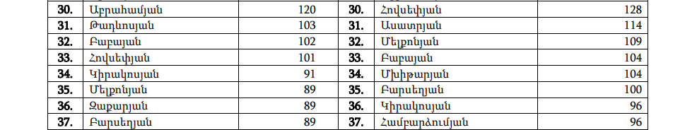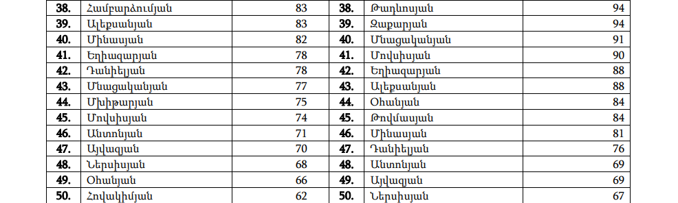 Թոփ 50 ազգանունների ցանկը ըստ սեռի՝ ստորև․