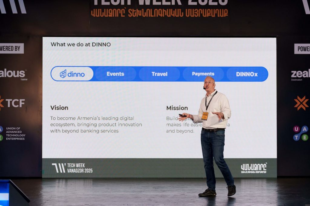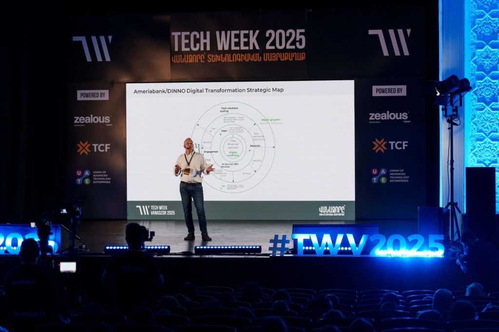 Ամերիաբանկի դուստր ձեռնարկության՝ «Դիննո» ՓԲԸ տնօրեն Արտյոմ Շամցյանն էլ Tech Week-ի շրջանակում կիսվեց ընկերության հաջողության պատմությամբ՝ «DINNO-ի առաջին միլիարդը․ հաջողության ճանապարհի 7 սկզբունքը» խորագրով ելույթում։