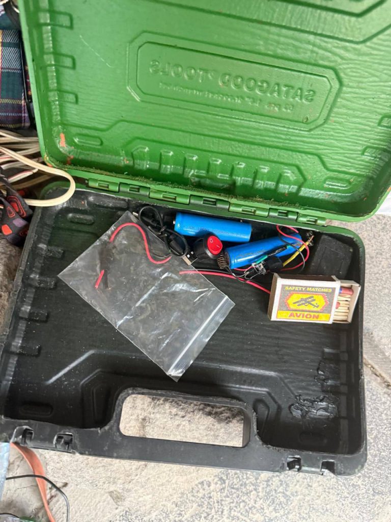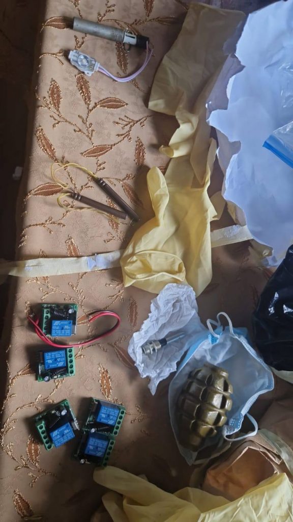 «ՀՀ քննչական կոմիտեի Երևան քաղաքի քննչական վարչությունում ահաբեկչության նախապատրաստության, ինչպես նաև՝ հրազենի, դրա հիմնական բաղկացուցիչ մասերի, ռազմամթերքի և այլ նյութերի, սարքերի, առարկաների ապօրինի շրջանառության վերաբերյալ ՀՀ քրեական օրենսգրքի 43-308-րդ հոդվածի 1-ին մասով և 335-րդ հոդվածի 1-ին մասով նախաձեռնված քրեական վարույթի շրջանակներում իրականացված մեծածավալ քննչական և վարութային գործողությունների, այդ թվում՝ մի շարք հասցեներում կատարված խուզարկությունների արդյունքում հայտնաբերվել են էլեկտրական անդրապայթիչ (детонатор), որը նախատեսված է հեռավար գործարկելու համար, դրա բաղկացուցիչ մասեր, մարտական նռնակ, մարտական նռնակի պայթուցիչ (запал), վառոդ, ռադիոկապի միջոցներ, քննության համար հետաքրքրություն ներկայացնող այլ իրեր և առարկաներ։
