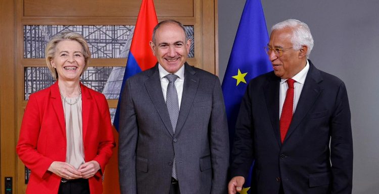Եվրոպական խորհրդի նախագահ Անտոնիո Կոշտան ու Եվրոպական հանձնաժողովի նախագահ Ուրսուլա ֆոն դեր Լեյենն այսօր Բրյուսելում հանդիպել են ՀՀ վարչապետ Նիկոլ Փաշինյանի հետ՝ Եվրոպական Միության և Հայաստանի միջև աճող գործընկերությունը վերահաստատելու և առաջ մղելու համար: Այս մասին ասվում է Եվրոպական խորհրդի տարածած հաղորդագրության մեջ։ Նշվում է, որ Անտոնիու Կոշտան և Ուրսուլա ֆոն դեր Լեյենը ողջունել են … Continue reading Կոշտան և ֆոն դեր Լեյենն իրենց աջակցությունն են հայտնել ՀՀ ինքնիշխանությանը, տարածքային ամբողջականությանը, ժողովրդավարական բարեփոխումներին և «Խաղաղության խաչմերուկ»-ին․ ԵՄ խորհրդի հայտարարությունը