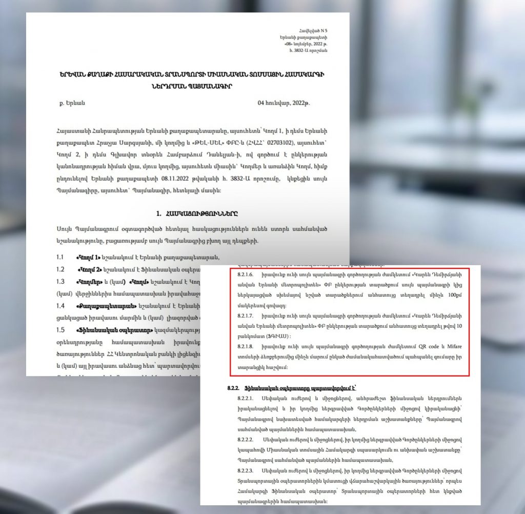 Տարօրինակ է, որ 2022-ին կնքված պայմանագիրը 3 տարի անց նման փոփոխության է ենթարկվել ու դարձյալ չի հրապարակվել, առավել ևս, որ Երևանի քաղաքապետարանը միասնական տոմսային համակարգի ներդրման համար «Թել-Սել»-ին չի վճարում, ընկերությունը նաև միջնորդավճար չունի։