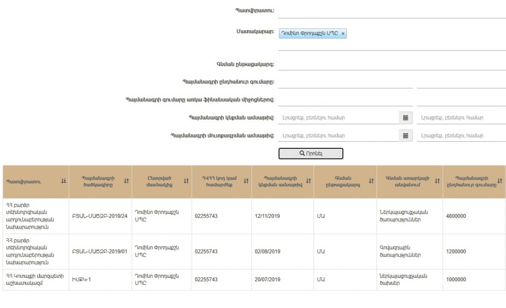 Armeps էլեկտրոնային գնումների համակարգի համաձայն՝ սա «Դոմինո Վիդեո Փրոդաքշն»-ի առաջին հաղթանակն է պետական գնումներում․ ընկերությունը 2022-2024-ին 3 անգամ մասնակցել է այլ մրցույթների, սակայն չի ընտրվել։