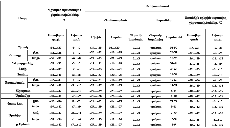 Տարիների 20%-ի ընթացքում Արարատյան դաշտում և Երևանում տեղումներ չեն դիտվել, բայց եղել են տարիներ, երբ այստեղ դրանց քանակը մի քանի անգամ գերազանցել է նորման: Տեղումներով օրերի թիվը ևս բավականին անհամաչափ է բաշխված, հանրապետության տարածքում` 7-11 օր, Արարատի, Արմավիրի մարզերում, Վայոց Ձորում` 1-4 օր: