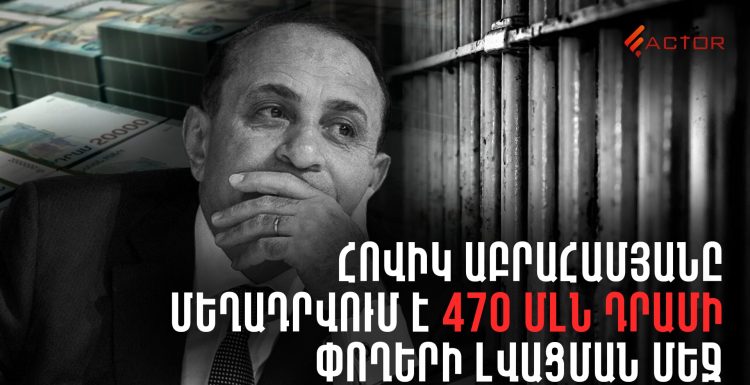 «Ոչ մի մուկ և ոչ մի ձուկ չի պլստալու, չի՛ պլստալու»։ Փաշինյանի այս հայտարարությունից 6 տարի անց ՀՀ նախկին վարչապետ Հովիկ Աբրահամյանը կնստի ամբաստանյալի աթոռին․ նա մեղադրվում է 470 մլն դրամի փողերի լվացման, պաշտոնեական լիազորությունները չարաշահելու և ձեռնարկատիրական գործունեությանն ապօրինի մասնակցության մեջ։ Ըստ նախաքննական մարմնի՝ Աբրահամյանը հանձնարարել է կազմակերպել անօրինական աճուրդներ, որոնց արդյունքում շուկայականից անհամեմատ … Continue reading Մինչև 12 տարվա ազատազրկում․ նախկին վարչապետը մեղադրվում է 470 մլն դրամի փողերի լվացման մեջ․ ՏԵՍԱՆՅՈՒԹ