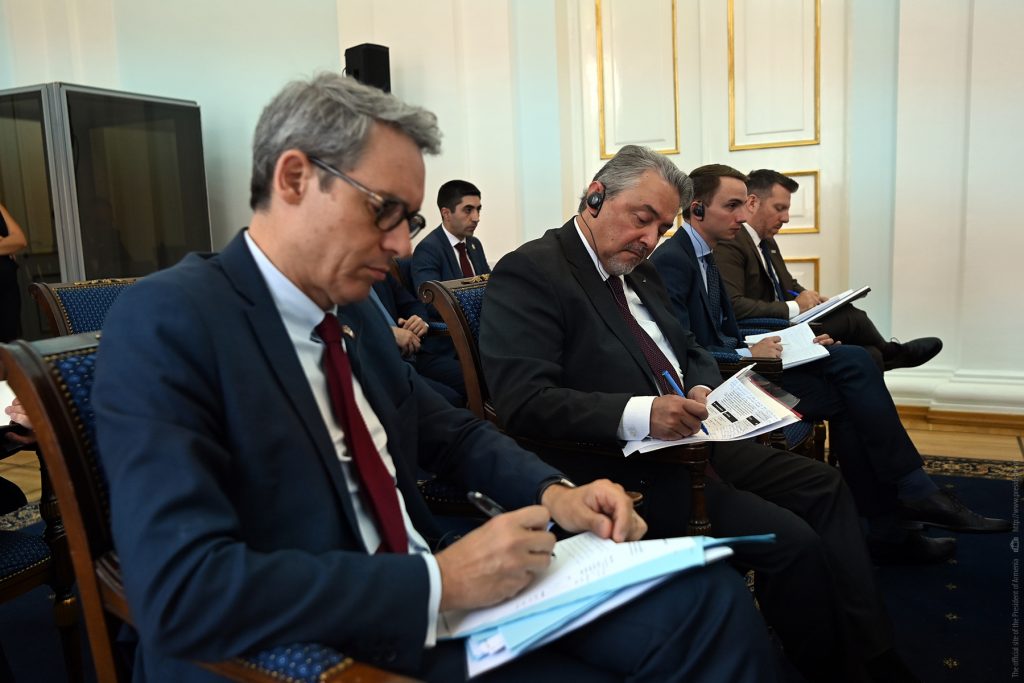Նշվում է, որ անդրադարձ է կատարվել տարածաշրջանային իրավիճակին, կայուն և տևական խաղաղության հաստատման ուղղությամբ տարվող քայլերին, ինչպես նաև միջազգային գործընկերների դերակատարությանը։ Նախագահ Խաչատուրյանը դեսպաններին ներկայացրել է Հայաստանի ներքին և արտաքին քաղաքական առաջնահերթությունները և պատասխանել նրանց հնչեցրած հարցերին։