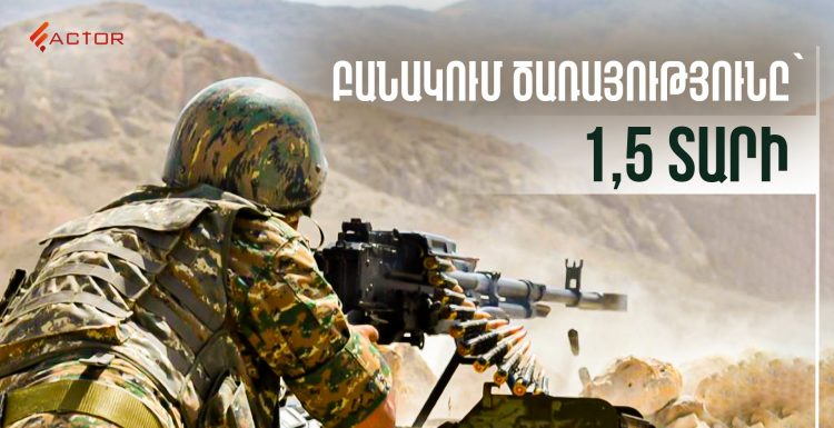 Հաջորդ տարի ամառային զորակոչից սկսած պարտադիր զինվորական ծառայության ժամկետը Հայաստանում կարող է կրճատվել։ Բանակ զորակոչվածները կծառայեն 1 ու կես տարի, եթե ԱԺ-ն ընդունի Պաշտպանության նախարարության հեղինակած նախագիծը։ Գերատեսչությունը քայլը հիմնավորում է պայմանագրային ծառայության աճով։ «Վերջին տարիներին պայմանագրային զինվորական ծառայության ընդլայնման նպատակով կատարվել են գործուն քայլեր՝ ի դեմս «Պաշտպան հայրենյաց» ծրագրի, արհեստավարժ սերժանտական համակարգի, զինծառայողների ատեստավորման … Continue reading Բանակում ծառայությունը՝ 1,5 տարի․ ՀՀ-ն անցնո՞ւմ է պրոֆեսիոնալ բանակի. ՏԵՍԱՆՅՈՒԹ