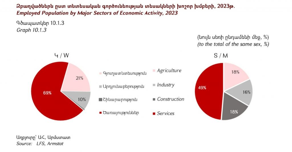 Պաշտոնական տվյալներով Հայաստանում գյուղոլորտում ընդգրկված է զբաղվածների 21,8 տոկոսը, իսկ զբաղվածություն ունեցող կանանց՝ 21 տոկոսը: