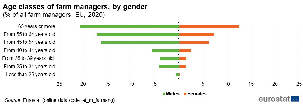 Թեև գյուղատնտեսությունը մնում է ԵՄ-ի խոշոր գործատուներից մեկը` (8.7 միլիոն մարդ) ֆերմերները ծերանում են. 57 տոկոսը 55 տարեկանից բարձր է, միայն 12 տոկոսը՝ 40 տարեկանից ցածր։ Գենդերային պատկերը նույնպես կանանց օգտին չէ: