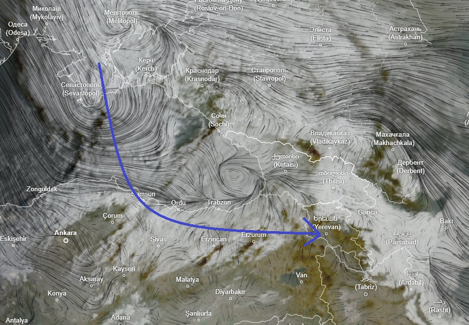 Սև ծովից Հայաստանին մոտեցող ակտիվ ցիկլոնը արբանյակային լուսանկարի վրա. գրել է «Հիդրոօդերևութաբանության և մոնիթորինգի կենտրոն»-ի փոխտնօրեն Գագիկ Սուրենյանն ու լուսանկար հրապարակել։