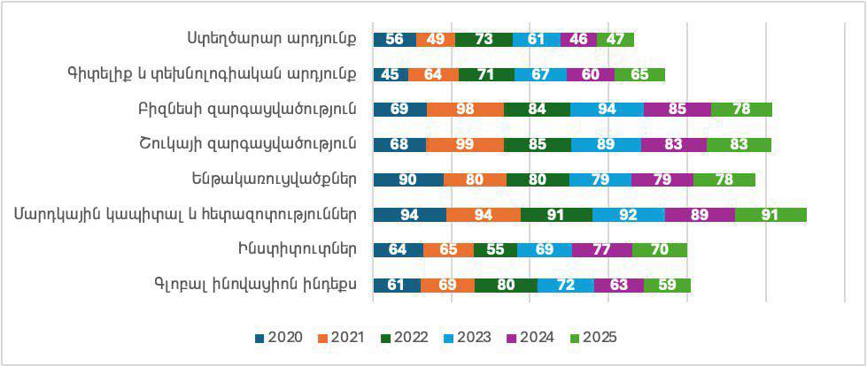 Մտավոր սեփականության համաշխարհային կազմակերպության (WIPO) 2025 թվականի սեպտեմբերի 16-ին հրապարակած «Գլոբալ Ինովացիոն Ինդեքս» զեկույցում Հայաստանը 139 երկրների շարքում զբաղեցրել է 59-րդ տեղը։ 2024 թվականի համեմատ գրանցվել է առաջընթաց՝ 4 դիրքով․ ֆեյսբուքյան իր էջում գրել է ՀՀ էկոնոմիկայի նախարար Գևորգ Պապոյանը: