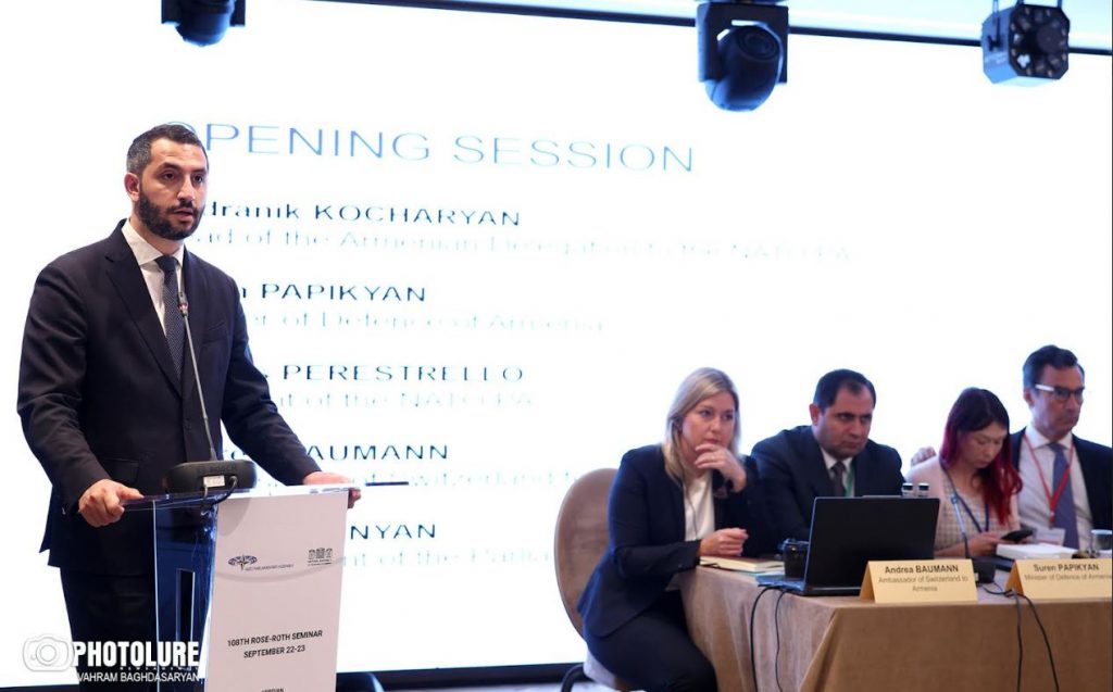 Երեւանում սեպտեմբերի 22-ին մեկնարկել է ՆԱՏՕ ԽՎ 108-րդ Ռոուզ-Ռոթ սեմինարի աշխատանքը: Ողջույնի խոսքով հանդես է եկել ՆԱՏՕ ԽՎ-ում ՀՀ ԱԺ պատվիրակության ղեկավար, ԱԺ պաշտպանության եւ անվտանգության հարցերի մշտական հանձնաժողովի նախագահ Անդրանիկ Քոչարյանը եւ նշել.
