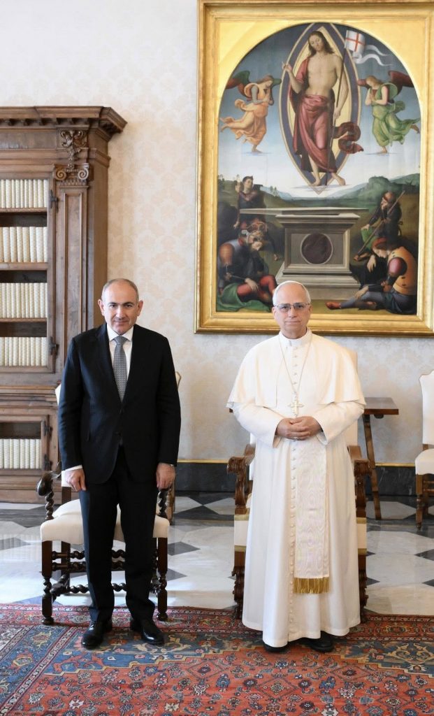 ՀՀ կառավարությունից հայտնում են, որ Նորին Սրբությունը ողջունել է վարչապետ Փաշինյանի այցը Վատիկան և մասնակցությունն Արքեպիսկոպոս Իգնատիոս Մալոյանի ու վեց այլ Երանելիների սրբադասման արարողությանը։ Նա ընդգծել է Սուրբ Աթոռի և Հայաստանի միջև հաստատված սերտ հարաբերությունները՝ հատկապես կարևորելով Վենետիկի Մխիթարյան միաբանության դերն այդ կապերի խորացման գործում։