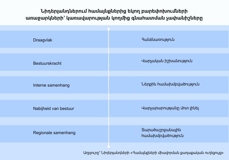 Ինչպես ՀՀ-ում՝ Նիդերլանդներում ևս համայնքների խոշորացման գործընթացի բարեփոխումները, ընդհանուր առմամբ, ավարտվել են։