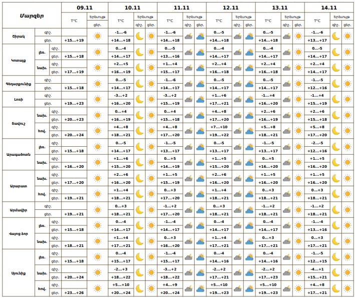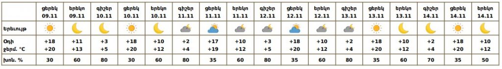 Օդի ջերմաստիճանը նոյեմբերի 9-ի ցերեկը բարձրանա ևս 1-2 աստիճանով։