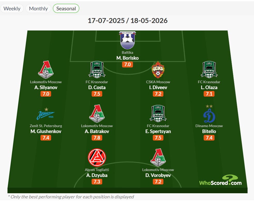 Ռուսաստանի ընթացիկ առաջնությունում 25-ամյա կիսապաշտպանը 15 խաղում խփել է 6 գոլ ու կատարել 11 գոլային փոխանցում։ Գործող չեմպիոն «Կրասնոդարը» 33 միավորով առաջատարն է, նույնքան միավոր ունի նաև երկրորդ տեղում գտնվող Մոսկվայի ԲԿՄԱ-ն։ Լավագույն եռյակը եզրափակող Սանկտ Պետերբուրգի «Զենիթը» հավաքել է 30 միավոր։