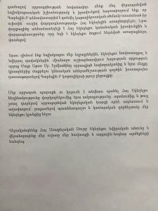 Տեքստից ենթադրվում է նաև, որ եպիսկոպոսները համարում են՝ կաթողիկոսի վարքագիծը անհամատեղելի է Հայ Եկեղեցու կանոնական իրավունքին և վարդապետությանը։ Նրանք դատապարտել են «Գարեգին Բ կաթողիկոսի թյուր ընթացքը»։