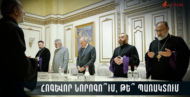 Նիկոլ Փաշինյանը երեկ հայտարարեց Մայր աթոռի բարձրաստիճան հոգևորականների հետ հանդիպման մասին։ Վարչապետի էջում երեկ հրապարակված կադրերից երևում է, որ եպիսկոպոսների և արքեպիսկոպոսների հայտարարության տակ ստորագրած 9 հոգևորականներից 7-ն է ներկա գործադիրի ղեկավարի հետ հանդիպմանը։ Կառավարությունում էր ևս մեկ հոգևորական, որը չէր ստորագրել փաստաթղթի տակ։ Տեսանյութի ուսումնասիրությամբ Factor TV-ն արձանագրել է, որ Փաշինյանի հետ հանդիպել են՝ … Continue reading Ովքեր են վարչապետի հետ հանդիպած 8 հոգևորականները․ եկեղեցական պառակտո՞ւմ, թե՞ հոգևոր նորոգում. ՏԵՍԱՆՅՈՒԹ