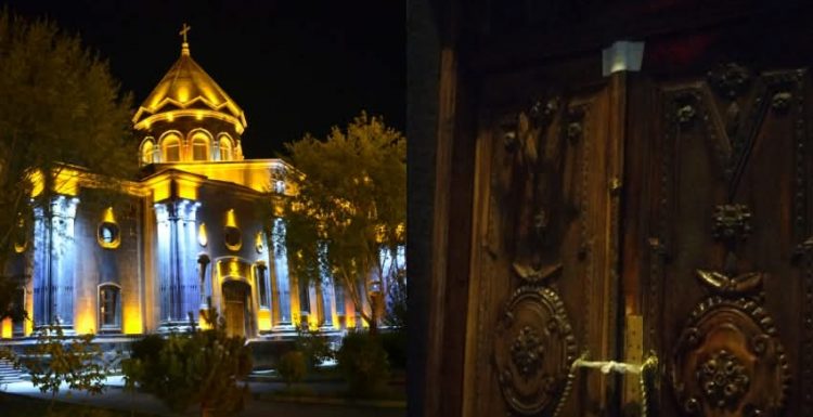 Գյումրիի Սուրբ Աստվածածին (Յոթ Վերք) եկեղեցու դռները երեկոյան ժամերգությունից հետո կապարակնքվել են` Փաշինյանի մասնակցությամբ տեղի ունենալիք պատարագից առաջ։ Հոգևորականները ոստիկանության ծառայողների ներկայությամբ դուրս են գալիս եկեղեցուց` նշելով, որ վաղը որևէ հոգևոր սպասավոր չի լինելու Սուրբ Աստվածածին եկեղեցում։ Մոմավաճառը ևս ներկա չի լինելու։ Հիշեցնենք` ավելի վաղ հայտնել էինք, որ իշխանական թիմը փնտրում է հոգևորականի, որը պատրաստ … Continue reading Կապարակնքել են Գյումրիի Յոթ Վերք եկեղեցու դռները` Փաշինյանի այցից առաջ