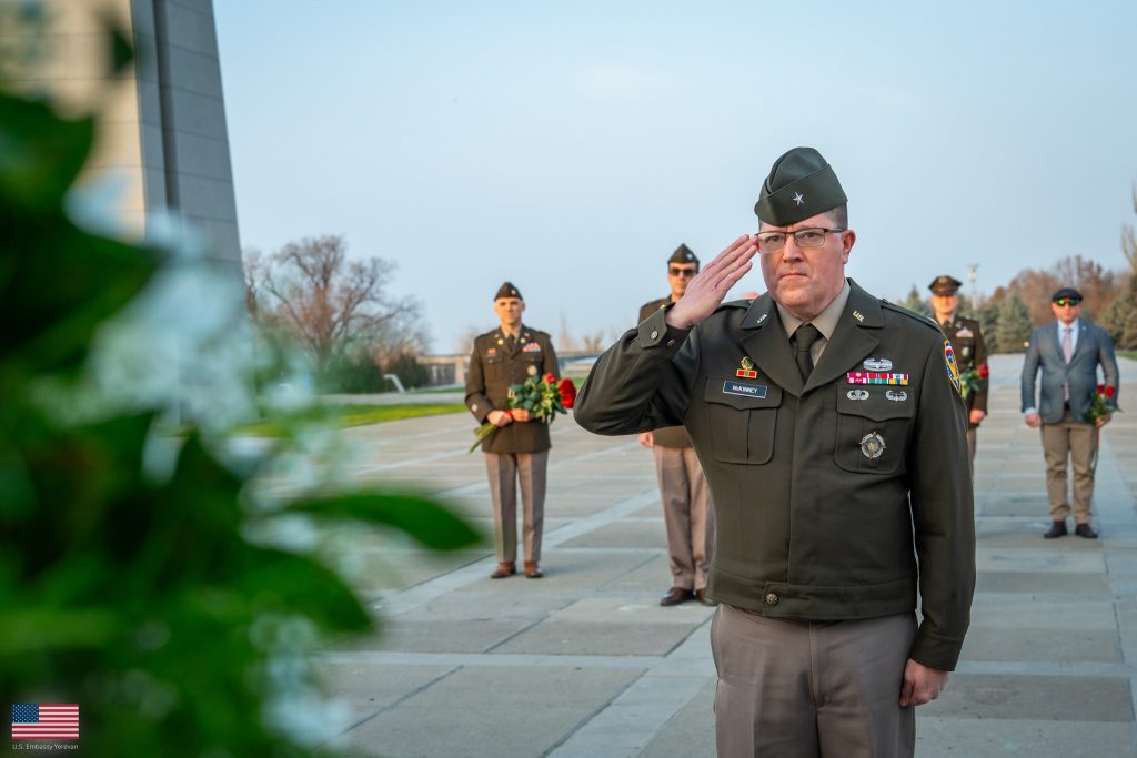 ՀՀ-ում ԱՄՆ դեսպանությունից հայտնում են, որ ԱՄՆ Եվրոպական հրամանատարության Գործընկերության, անվտանգային համագործակցության և զանգվածային բնաջնջման զենքերի հակազդման հարցերով փոխտնօրեն, բրիգադային գեներալ Քրիս Մքինիի գլխավորած պատվիրակությունը հարգանքի տուրք է մատուցել Ծիծեռնակաբերդի հուշահամալիրում՝ ծաղիկներ դնելով անմար կրակի մոտ։