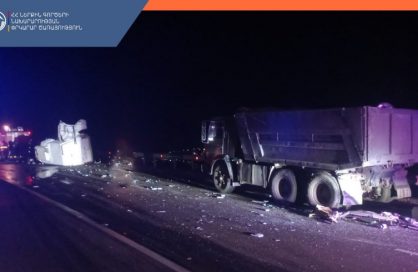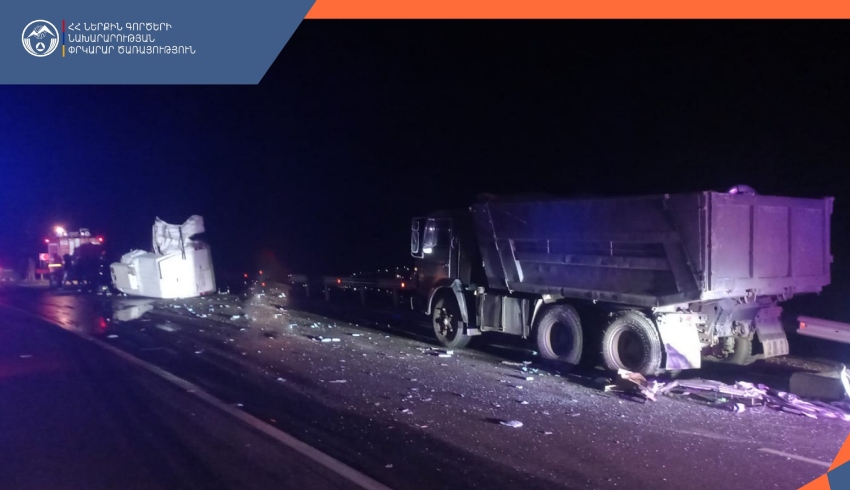 Ford մակնիշի ավտոմեքենան բախվել է կայանած KamAZ մակնիշի բեռնատարին և կողաշրջվել