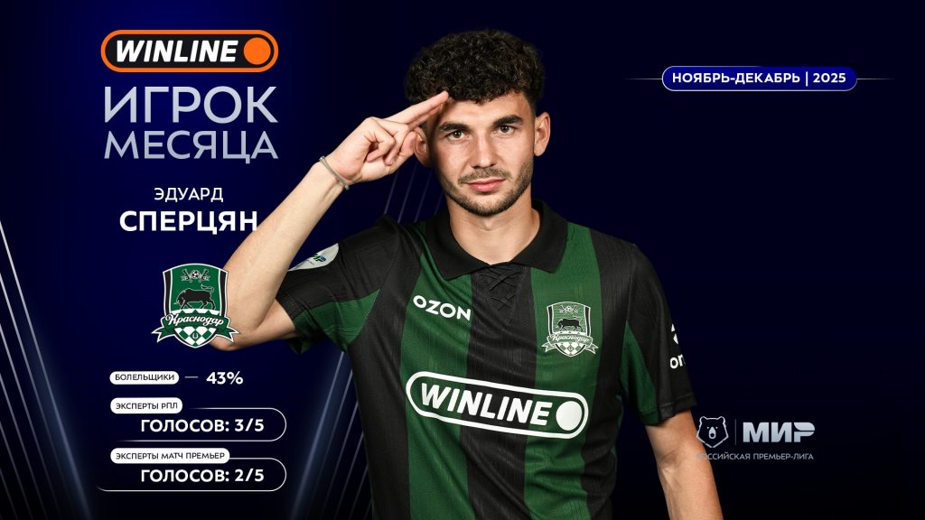 «Կրասնոդարի» կիսապաշտպան Էդուարդ Սպերցյանը ճանաչվել է Ռուսաստանի Պրեմիեր լիգայի նոյեմբեր-դեկտեմբերի լավագույն ֆուտբոլիստ, հաղորդում է առաջնության մամուլի ծառայությունը։