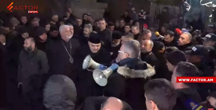Ամենայն Հայոց Կաթողիկոսի դեմ ընդվզած 10 եպիսկոպոսներն իրենց հայտարարած ժամից 1 ժամ ուշացումով ժամանեցին Մայր Աթոռ։ Չորս կողմից շրջապատված մեծաթիվ ուղեկցող անձանցով նրանք մոտեցան Վեհարանին՝ չպատասխանելով լրագրողների հարցերին։ Նրանք կանգ առան Մայր տաճարի մոտ, որտեղից էլ Բալթյան երկրների հայոց թեմի առաջնորդ Վազգեն արքեպիսկոպոս Միրզախանյանը բարձարխոսով հայտարարեց՝ Ամենայն հայոց կաթողիկոսը պիտի հեռանա։ «Մենք բոլորս Մայր աթոռ … Continue reading Գարեգին Բ-ի դեմ ընդվզած եպիոսկոպոսները ժամանեցին Մայր Աթոռ․ նրանց ելույթն ուղեկցվեց սուլոցներով․ ՏԵՍԱՆՅՈՒԹ