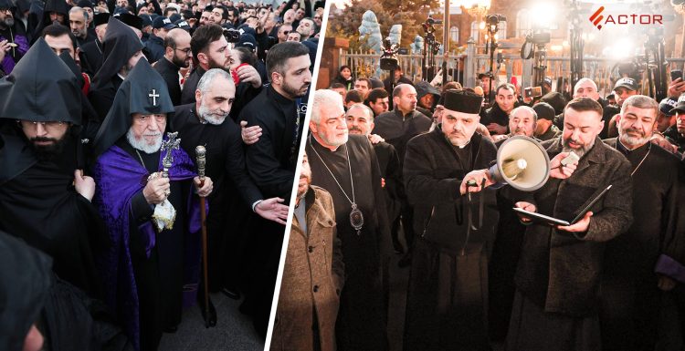 Ոստիկանական մի քանի շերտանոց պատնեշով են իրարից բաժանված Գարեգին Բ-ին աջակցողներն ու նրա հեռացումը պահանջողները. Մայր տաճարի բակն աննախադեպ բազմամարդ է, հավաքվածների մեծ մասը եկել է տասը եպիսկոպոսների հայտարարության պատճառով։ Վեհարանից Մայր տաճար ժամերգության գնացող Գարեգին Բ Ամենայն հայոց կաթողիկոսը լսում է իրեն ուղղված կողմ և դեմ արտահայտություններ։ Կաթողիկոսին ուղեկցող հոգևորականները թույլ չեն տալիս լրագրողներին … Continue reading Գարեգին Բ-ն մտադիր չէ հեռանալ․ քաղաքական գնահատականներ՝ Մայր Աթոռում տեղի ունեցածի շուրջ