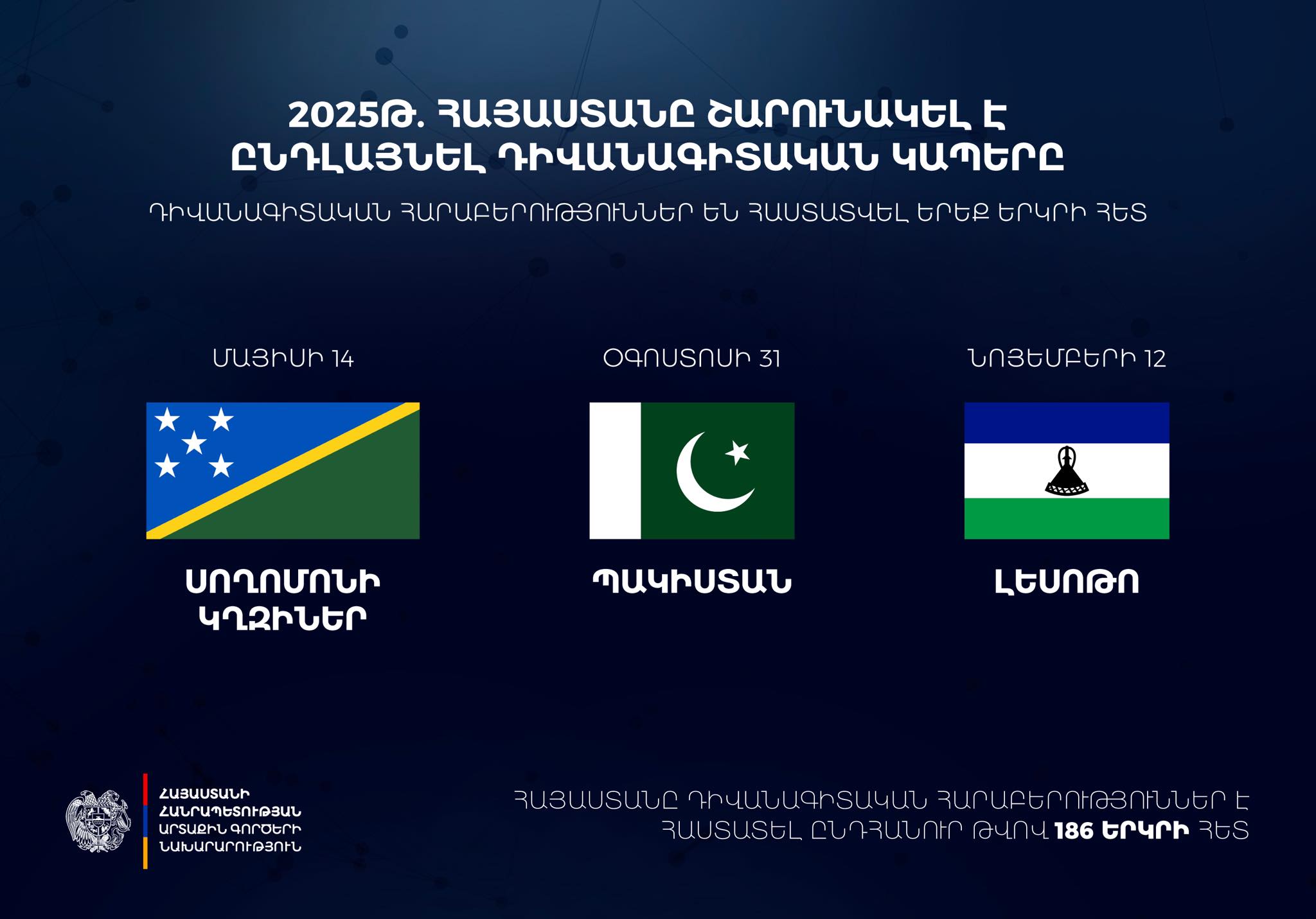 ՀՀ ԱԳՆ-ն 2025-ին դիվանագիտական հարաբերություններ է հաստատել 3 երկրի հետ